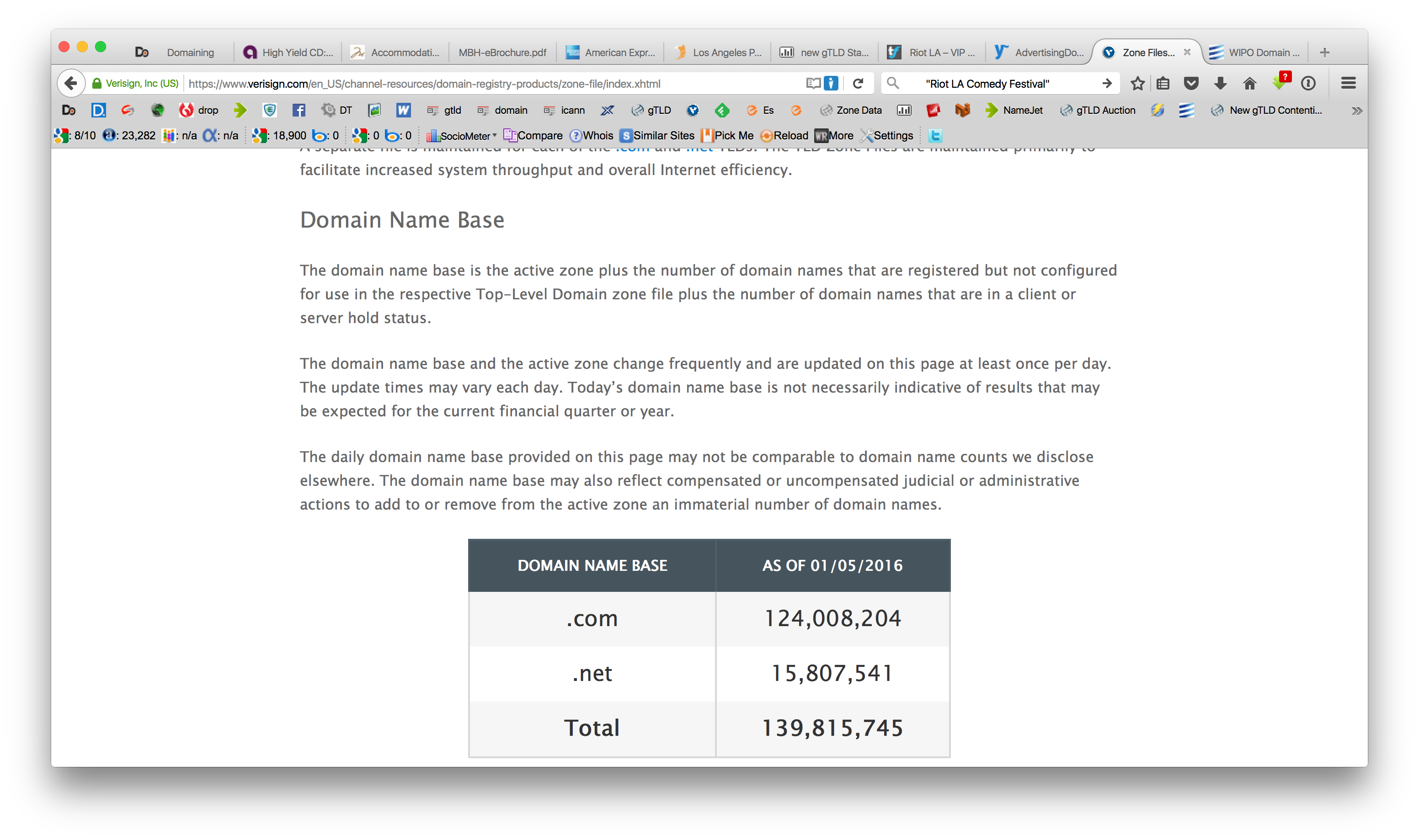 As of Dec. 31, 2014, the base of registered names in .com equaled 115.6 million names.