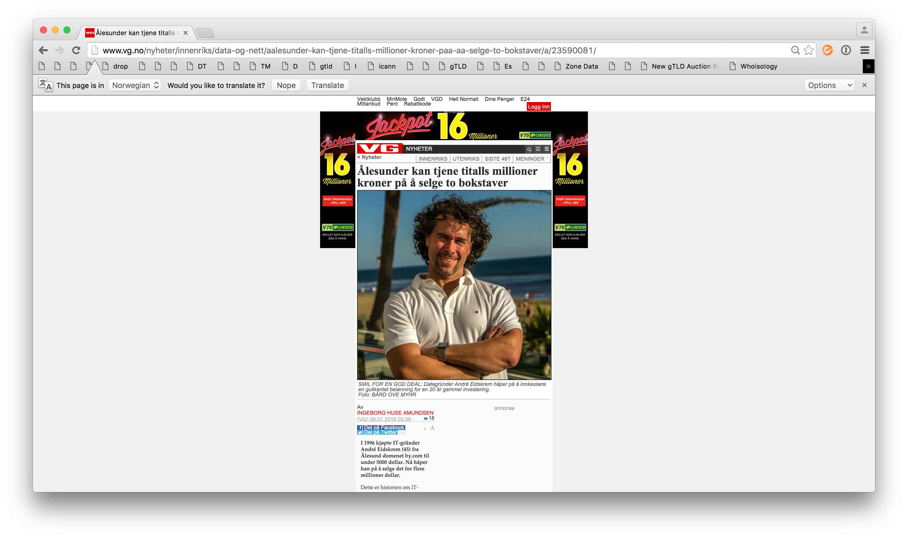 Its a very interesting story about the owner of the domain IT entrepreneur André Eidskrem who bought the domain in 1996 for around $5,000