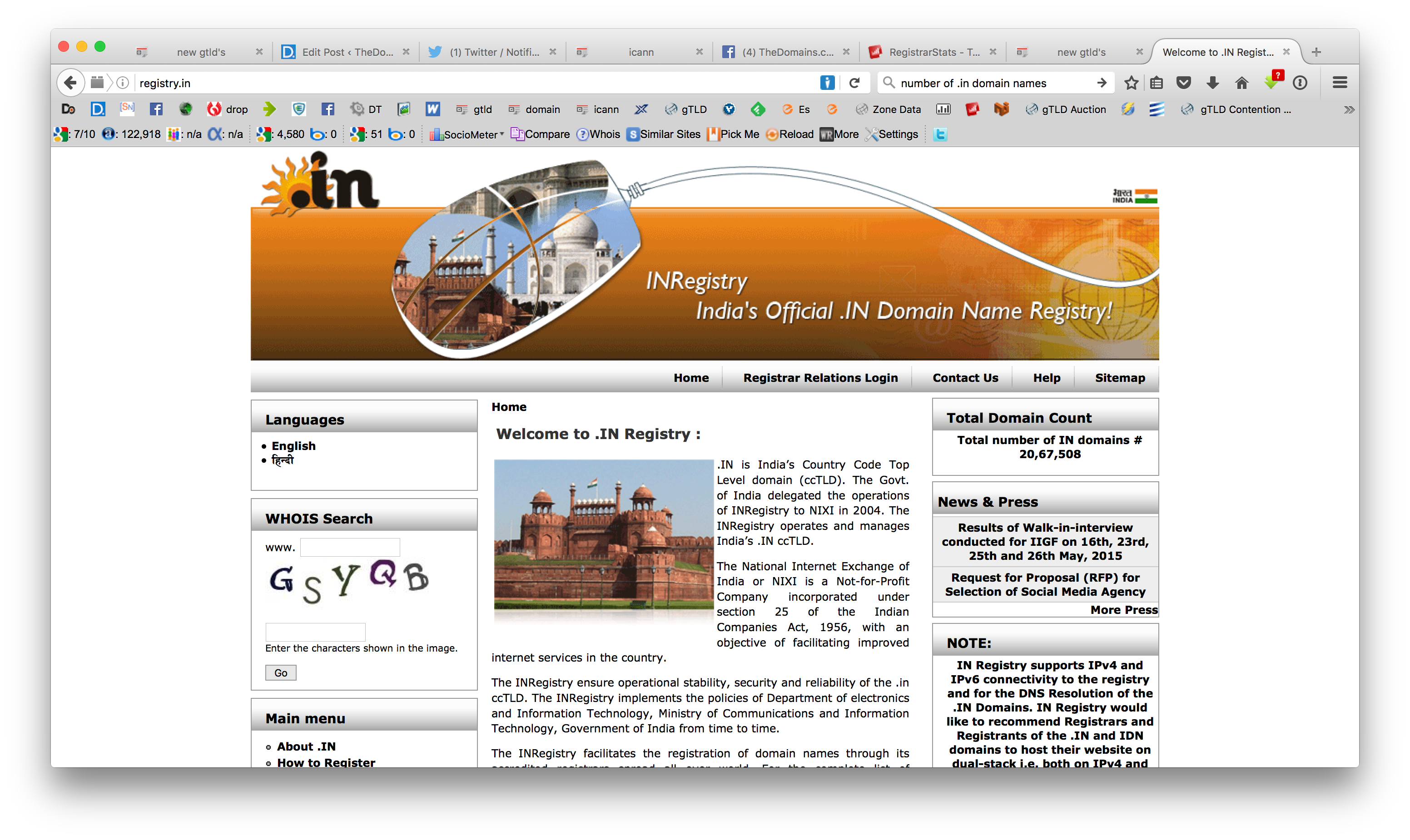 The IN Registry the official registry for the .in ccTLD domain extension for India has started to post registrations stats on their site showing the number of .in registered domain names.