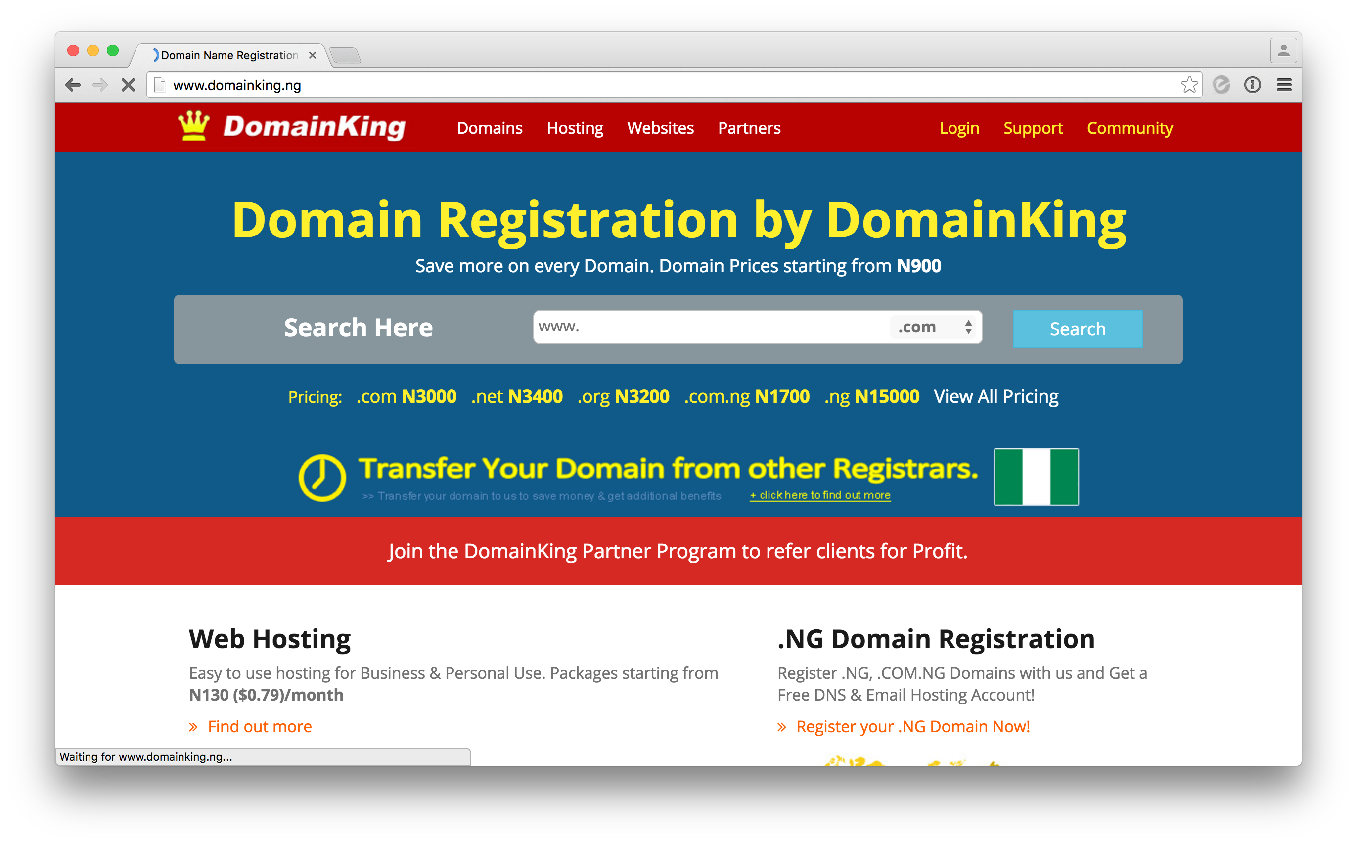 DomainKing.ng is going to a full on domain name registrar site which appears to be owned by a company out of Jalandhar, India.